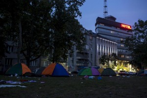 Migrants sleep in tents in a park near the main bus and train station in Belgrade, Serbia, August 26, 2015. A surge in migrants, many of them refugees from Syria, hit Hungary’s southern border on Tuesday, passing through gaps in an unfinished barrier to a Europe groping for answers to its worst refugee crisis since World War Two. REUTERS/Marko Djurica
