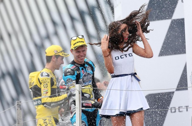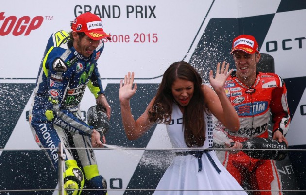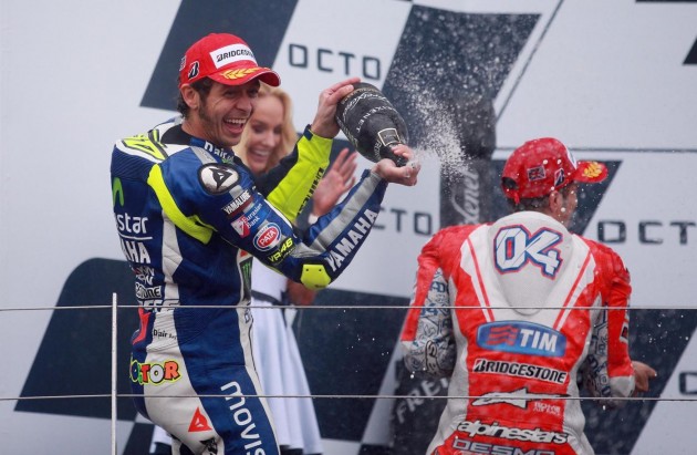 La partenza era stata posticipata, infatti, causa meteo. La pioggia battente che è caduta sul circuito di Silverstone aveva convinto gli organizzatori a far rientrare i piloti ai box dopo il warm up. “Speravo che la pioggia mischiasse le carte, ma non pensavo così tanto”, commenta Danilo Petrucci, partito dal 18° posto. Per il pilota umbro della Octo Pramac Racing è il primo podio in MotoGp, ottenuto dopo una gran rimonta, “Ho pescato il jolly, ancora non ne me rendo conto”, spiega a fine gara. A un certo punto l’italiano ha creduto alla vittoria: “Quando ho visto avvicinarmi a Rossi pensavo a prenderlo e non guardarmi dietro. Poi negli ultimi giri ho rallentato. Pensavo che mi sarei svegliato da un momento all’altro. E’ stato fighissimo”. Soddisfatto anche Andrea Dovizioso, arrivato terzo: “Sono contento, era importante tornare sul podio”. Il pilota romagnolo ha tentato fino alla fine di sorpassare il connazionale: “Mi aspettavo di vederlo cadere ad ogni frenata, ma ha guidato bene, gli faccio le congratulazioni“.