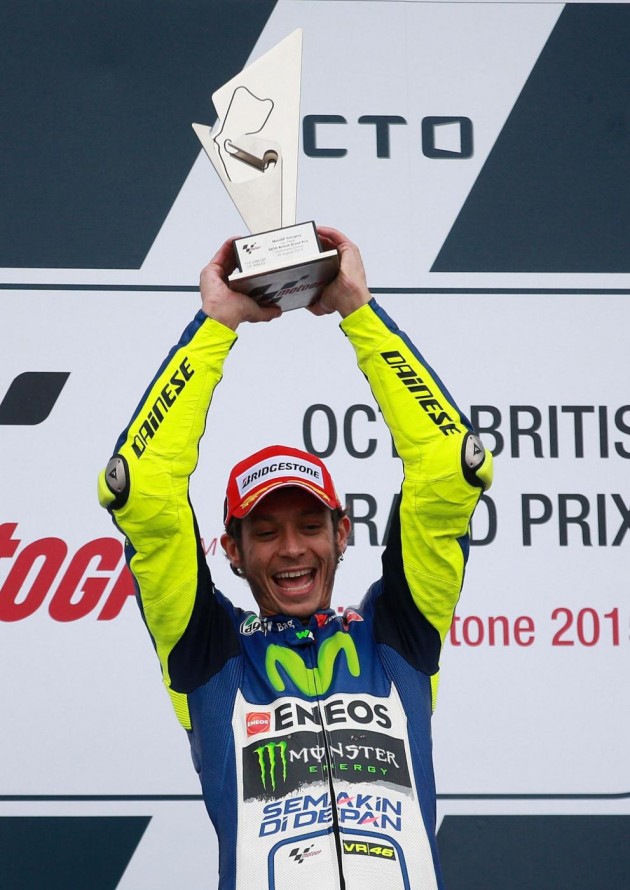 Per Valentino Rossi questo è il 112° trionfo in carriera. Stamattina l’italiano era già stato il più veloce nel warm up del Gp di Gran Bretagna. Il campione pesarese aveva concluso il suo giro con il tempo di 2’18”660, lasciando dietro di sé il connazionale Danilo Petrucci (Ducati), staccato di 609 millesimi e lo spagnolo Marc Marquez, terzo, a 701 millesimi.