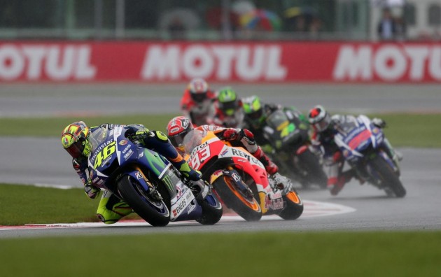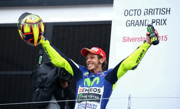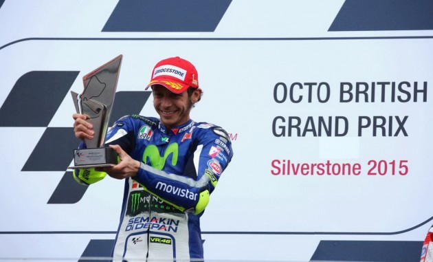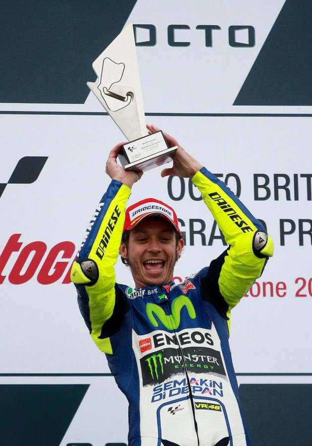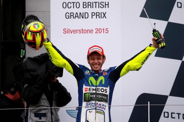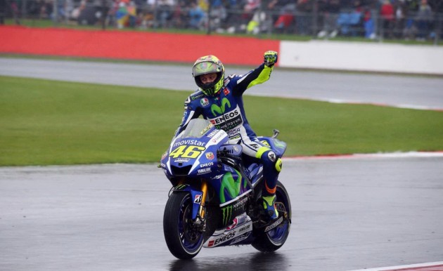 Valentino Rossi ha vinto il Gran Premio di Gran Bretagna. E l’ha fatto sul bagnato davanti a Danilo Petrucci su Ducati e ad Andrea Dovizioso: un podio tutto italiano, come non accadeva da tempo. Un risultato ancora più importante per il quarto posto di Jorge Lorenzo che torna nella classifica piloti dietro al Dottore di 12 punti. Il campione del mondo, Marc Marquez, partito in pole position, è caduto al tredicesimo giro mentre era all’inseguimento del nove volte campione. Quinto posto per Dani Pedrosa su Yamaha che ha chiuso davanti ai due britannici Scott Redding (Honda) e Bradley Smith (Yamaha). Completano la top ten la Ducati di Andrea Iannone, la Suzuki di Aleix Espargarò e l’Aprilia di Alvaro Bautista.