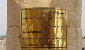 A view shows the sign of the temple of Baal Shamin in the historical city of Palmyra, Syria October 26, 2009. Islamic State’s demolition of an renowned ancient Roman temple in the Syrian city of Palmyra is a war crime that targeted an historic symbol of the country’s diversity, the U.N. cultural agency UNESCO said on August 24, 2015. Ultra hardline Islamic State militants blew up the temple of Baal Shamin on August 23, 2015, Syria’s antiquities chief Maamoun Abdulkarim said, describing the destruction of one of the most important sites in the central city. Picture taken October 26, 2009. REUTERS/Stringer