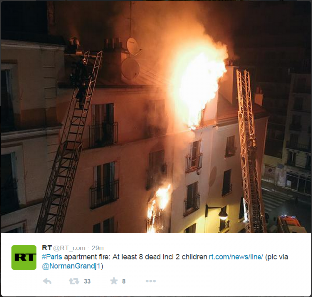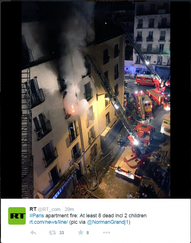 Il fuoco è divampato in un edificio di cinque piani in via Myrha nel XVIII arrondissement vicino a Montmartre e nella tarda mattinata i vigili del fuoco stavano ancora tentando di spegnere le fiamme. Secondo le prime informazioni fornite dalla polizia, due delle otto vittime sono morte dopo aver cercato di salvarsi buttandosi dalla finestra, le altre probabilmente a causa del fumo.