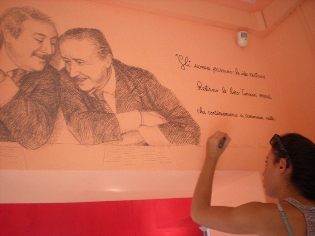 Poi maxi giochi disegnati sui pavimenti esterni (per esempio quello della “campana” e del “lombrico”), opere d’arte in ceramica e murales. Ma non è finita qui. La onlus va avanti, e in fretta. “Noi non ci fermiamo – dichiara Paola -. Ci sono già arrivate altre 15 richieste di interventi da Milano, Treviso, Viterbo fino in Sicilia. Ci scrivono su Twitter, Facebook o via mail. Ci ha contattato anche una prof di letteratura italiana di una scuola di New York, vuole che la sua classe partecipi a un campo lavoro con noi per dare un senso alla vacanza in Italia”. E il Miur? “Abbiamo incontrato quelli del ministero. Faraone è venuto all’inaugurazione del Bar del Cassarà a Palermo. Speriamo di concludere presto un’intesa. Ci servono altri fondi”.