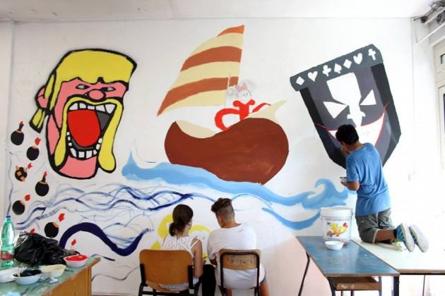 Nel luglio 2014, in dieci giorni, un gruppo di studenti, aiutati da artisti e abitanti della zona, hanno rifatto il look all’istituto. Tinteggiature, affreschi, seggiole e tavoli tirati a lucido. Oggi i lunghi corridoi dei piani sembrano una galleria di arte moderna. Da settembre a novembre i giovani volontari hanno recuperato anche un vecchio bar al piano terra, chiuso da una vita (“per non rubare i clienti a quelli della zona” dicono a scuola), con l’idea di trasformarlo in un centro culturale aperto al quartiere. Bancone nuovo, rifatti gli impianti elettrici e idraulici.