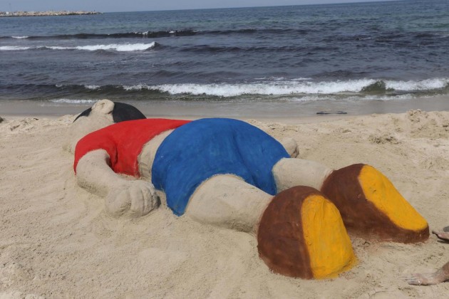La statua di sabbia riproduce l'immagine che hanno fatto il giro del mondo, in cui il piccolo era riverso a terra senza vita sul litorale di Bodrum. Nello stesso punto nel 2014 morirono 4 cuginetti palestinesi colpiti da un missile