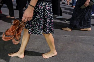 People demonstrate during a barefoot march in solidarity with migrants. The march started from piazza Verdi and ended at the harbor of Palermo.