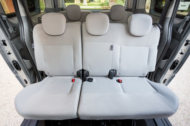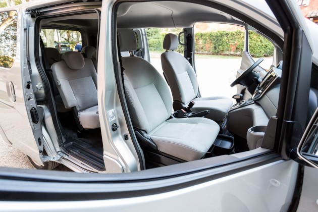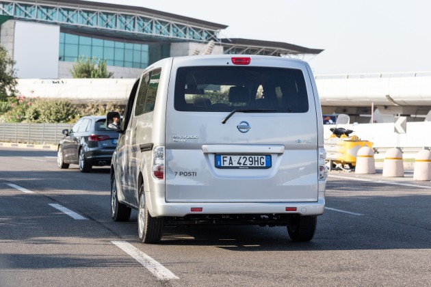 Ma al di là dei freddi calcoli economici, come va la Nissan e-NV200 Evalia su strada? L’abbiamo guidata per qualche chilometro nei pressi di Fiumicino, Roma. La posizione di guida è molto “seduta”. Si guarda il traffico dall’alto verso il basso, insomma, e non solo per la sensazione di superiorità morale che prova chi non brucia gasolio (almeno non a bordo). Il volante è piuttosto orizzontale (e purtroppo non regolabile in profondità), ma lo scatto fulmineo tipico delle elettriche (merito dei 254 Nm disponibili da subito) insieme alla trasmissione automatica e alla silenziosità contribuiscono non poco a migliorare l’esperienza a bordo rispetto ai classici pullmini. Le finiture e i materiali sono più da mezzo da lavoro che da automobile, e pure le regolazioni dei sedili non abbondano, ma nel complesso si sta comodi. Anche se ci si siede nella seconda fila, compatibilmente con la larghezza ridotta del mezzo che costringe tre adulti a uno spalla-contro-spalla non sempre piacevole. Stanno tutto sommato meglio i due che siedono in fondo, perché i sedili, per quanto molto vicini al pavimento, sono sedili veri e non sono semplici strapuntini; peccato solo che la sospensione posteriore sia molto rigida, anche a causa del notevole peso delle batterie. Le quali si ricaricano in 10-12 ore alla presa di casa; in 4 ore con la wallbox dedicata, che se acquistata dalla Nissan tramite il fornitore di servizi Easy, assicura l’estensione della garanzia sull’accumulatore da 5 anni/100.000 km a 7 anni/150.000 km.