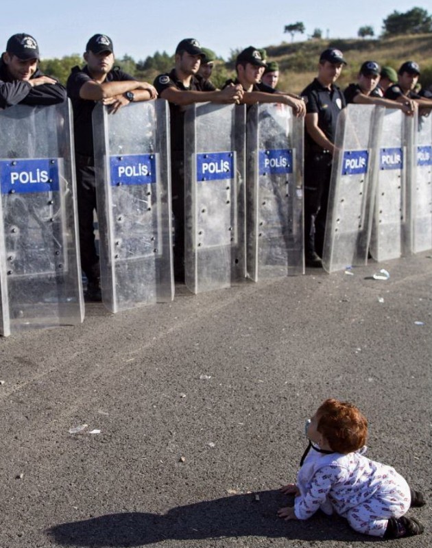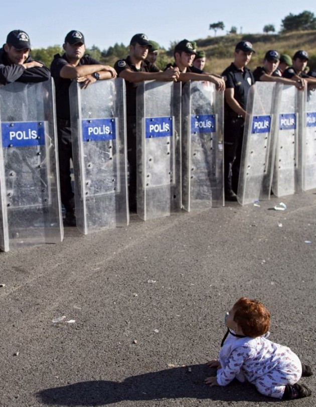 Una baby profuga di neanche un anno di origini siriane gattona, in apparenza tranquilla, davanti alla polizia turca schierata sull’autostrada Istanbul-Edirne per bloccare i migranti. Le foto, in contrasto con le immagini di morte e violenza di questi giorni, fanno il giro dei media e dei social. Aprono il sito della Bbc e diventano virali su Twitter. Fino ad ora, la Turchia è il primo Paese al mondo che ha accolto il maggior numero di sfollati provenienti dalla Siria: circa 2 milioni di persone.