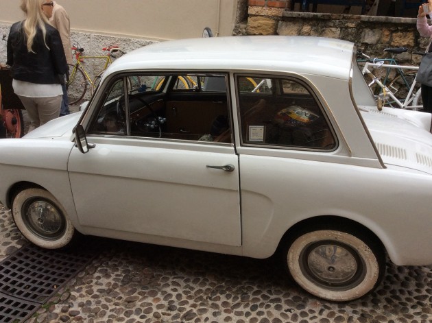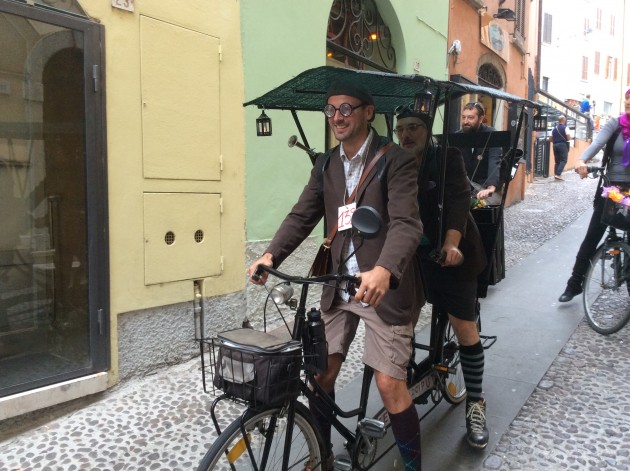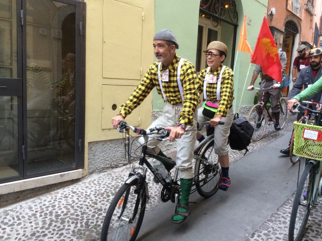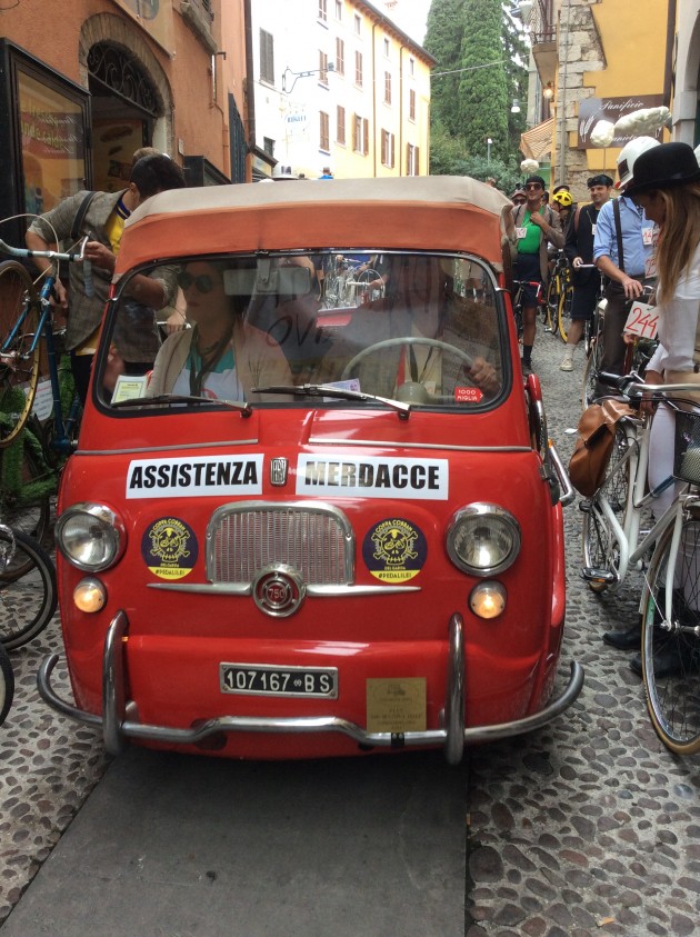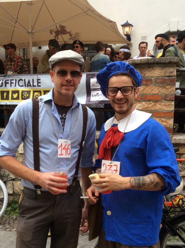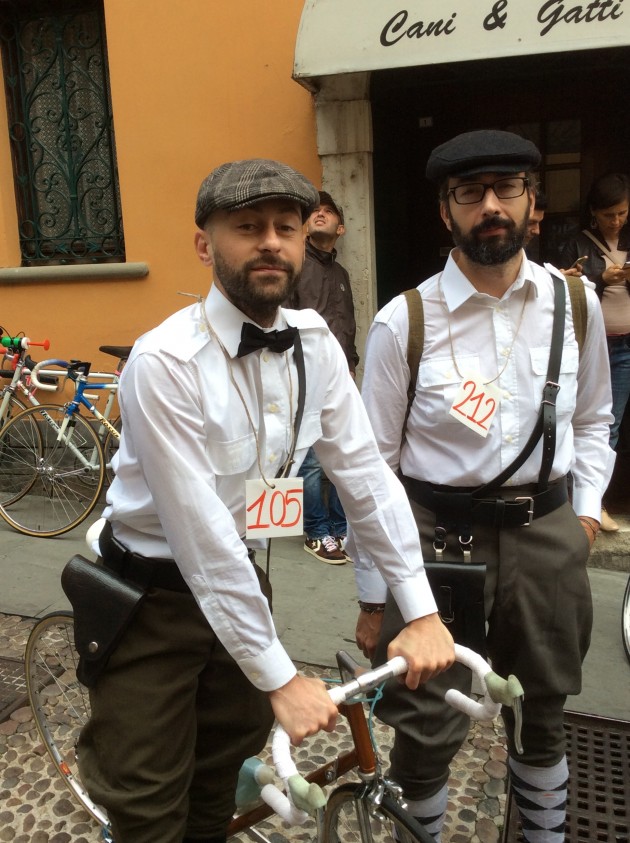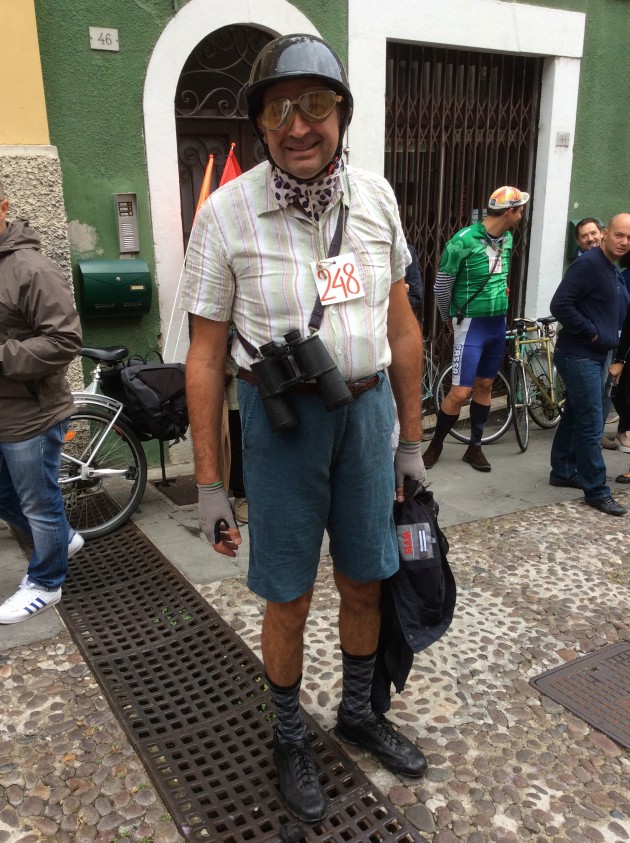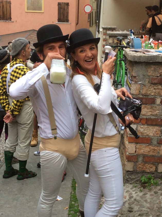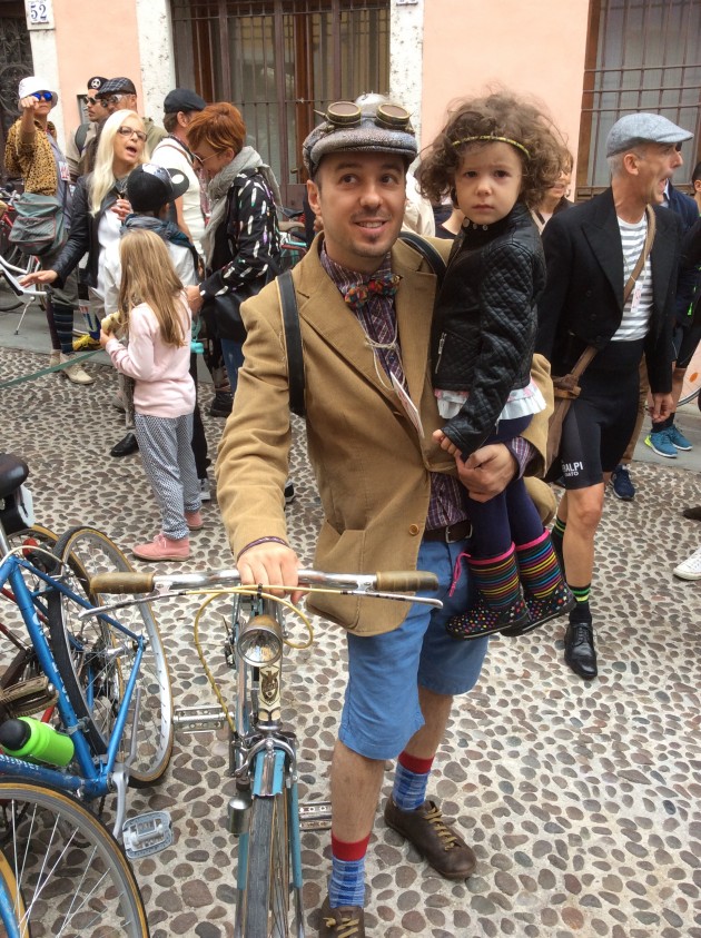 Il visconte Cobram era un fanatico di ciclismo, ma di Coppa ne aveva organizzata una sola. Il Biciclettaio matto (alias Mauro Bresciani, ideatore dell’evento) fa di più: raddoppia. E oggi, a Desenzano, dove un cielo coperto ed un accenno di pioggia non possono certo fermare un ‘evento‘ di tal portata – mette in scena la seconda edizione della mitica Coppa Cobram (#pedalilei è l’hashtag scelto). La rievocazione della terribile gara ciclistica di “Fantozzi contro tutti”, già un successo l’anno passato, quest’anno triplica i partecipanti: di bici vintage se ne contano 200 (contro i 70 della precedente edizione), con le iscrizioni chiuse con largo anticipo. Tanti mutandoni ascellari, occhialoni da aviatore, ma l’abbigliamento old style, sì consigliato, non è tuttavia d’obbligo. Molti i personaggi stravaganti, e con mise simpatiche seppur non in tema.