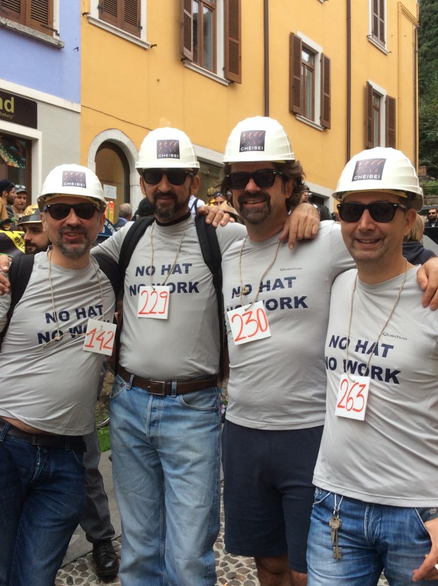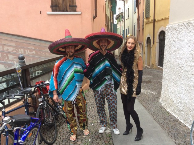 A Desenzano gareggia anche gente ‘normale’ (pochi per la verità). Trenta team provenienti da ogni parte d’Italia si sono dati appuntamento, alle 10, presso il risto-pub l’Ozioso Castellano – diventato un caravanserraglio per l’occasione – per la punzonatura, la consegna dei cartellini e la ‘colazione da campioni’ (un buffet dolce/salato niente male). “Stamattina sono uscito di casa così, e non vi dico la faccia di mia moglie – racconta Marco, di Saló, occhiali spessi un dito e un cappello improbabile -. Vessato io? Certo, mi sento un Fantozzi sia a casa che al lavoro”. E c’è il vincitore della passata edizione, che vestito da Filini ci riprova: “Ma durante la settimana sono una persona seria. Fidatevi. Buona Cobram a tutti”. Ventuno chilometri in tre tappe: un percorso che a tratti lambisce il lago in una cornice davvero spettacolare con i 200 ‘ciclisti demenziali‘ (lo scriviamo, naturalmente, con sorriso e stima) che giungono nella splendida spiaggia del Porto di Rivoltella. Partenza alle 11, e prima tranche di tre chilometri con passerella nel centro storico di Desenzano.