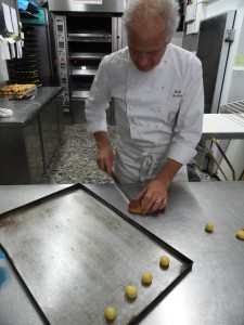 Sacchetti al lavoro nel suo laboratorio