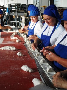 Operaie al lavoro durante la posatura in fiocchi