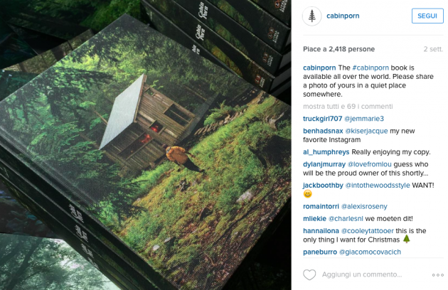 Chi non ha mai immaginato una fuga dalla frenesia del quotidiano verso un luogo lontano e isolato, magari all’ombra di una montagna sconosciuta, dove staccarsi dai social e rifugiarsi col partner (o l’amante) senza rendere più conto di orari e scadenze? Se la risposta è positiva, allora Cabin Porn, blog su Tumblr, pagina Instagram e da oggi libro fotografico, è la miniera di immagini da sogno e indirizzi veri che fa per voi. Nessuna pretesa osé come titolo suggerisce. Cabin ha un significato letterale di capanna, baita, chalet. Porn invece richiama una rara accezione più anglosassone del sostantivo legata a un pensiero, un desiderio eccessivo e irresistibile da soddisfare. Qualcosa che sta tra la ricerca di un rapporto intimo con la natura come in Walden – La vita nei boschi di Henry David Thoreau, e quella sensazione più prosaica che assale ogni lavoratore a fine giornata e che si insinua come un sogno di pace sensoriale irraggiungibile: il sottotitolo infatti è “ispirazione per un vostro spazio di quiete, ovunque”.