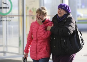 Women react as they walk at Pulkovo airport in St. Petersburg, Russia, October 31, 2015. A Russian airliner carrying 224 passengers and crew crashed in Egypt’s Sinai peninsula on Saturday, the Egyptian civil aviation authority said, and a security officer who arrived at the scene said most of the passengers appeared to have been killed. The Airbus A 321, operated by Russian airline Kogalymavia, was flying from the Sinai Red Sea resort of Sharm el-Sheikh to St Petersburg in Russia when it went down in a desolate mountainous area of central Sinai soon after daybreak, the aviation ministry said. REUTERS/Peter Kovalev