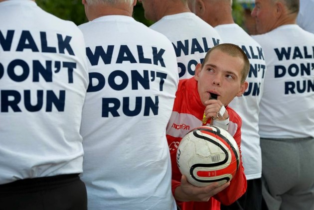 Il motto, che poi è anche una regola da fischio dell’arbitro, è “walk, don’t run“, cioè “cammina, non correre“. Perché il Walking Football non lo si gioca come il calcio tradizionale. Certo, in campo ci sono i giocatori, un giudice di gara, e 2 squadre rivali che si contendono il pallone bianco e nero per fare gol nella porta avversaria. Ma difensori, portieri, centrocampisti e attaccanti sono tutti over 50. E durante la partita, correre è vietato. Da qui il nome, che letteralmente significa “calcio camminato“.