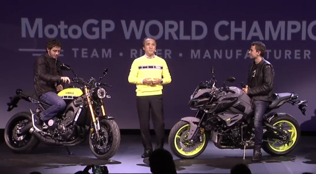 Eicma 2015 Milano, Yamaha presenta XSR e MT-10, sul palco gelo fra Valentino Rossi e Lorenzo – Foto