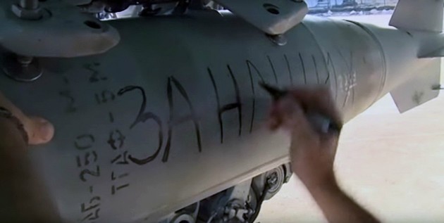 “Per Parigi”, piloti russi scrivono dediche di morte sulle bombe per i raid in Siria (FOTO)
