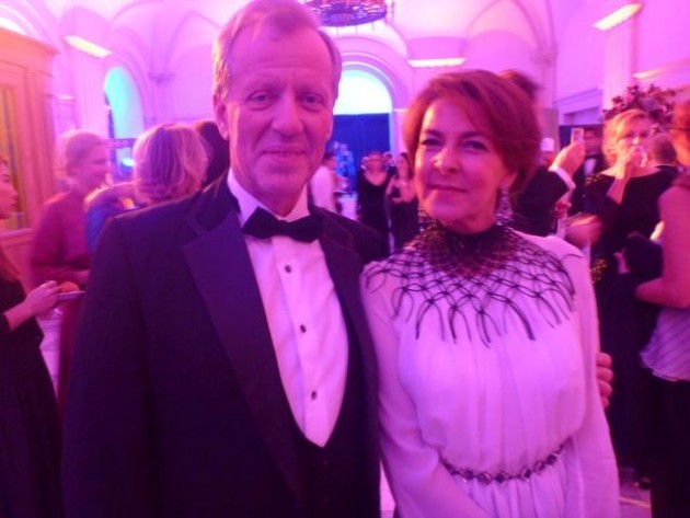 Ad accogliere gli ospiti un picchetto d’onore di ufficiali in marcia trionfale, suonata di balalaika, uno strumento a tre corde, e concerto hip hop sullo sfondo a tutto schermo il gran ballo del hollywoodiano “Guerra e Pace”. Intanto comincia l’assalto al buffet fatto di uova di storione e di pelmeni siberiani, che sono una specie di panzerotti ripieni di carne macinata e si aspetta il benvenuto di Fekla Tolstoy, nipote dello scrittore. Ad applaudire Giorgio Nocerino, Aimone d’Aostae e il notaio Sergio Cappelli che sulla giacca di smoking si è fatto cucire in tutte le lingue la parola Pace.