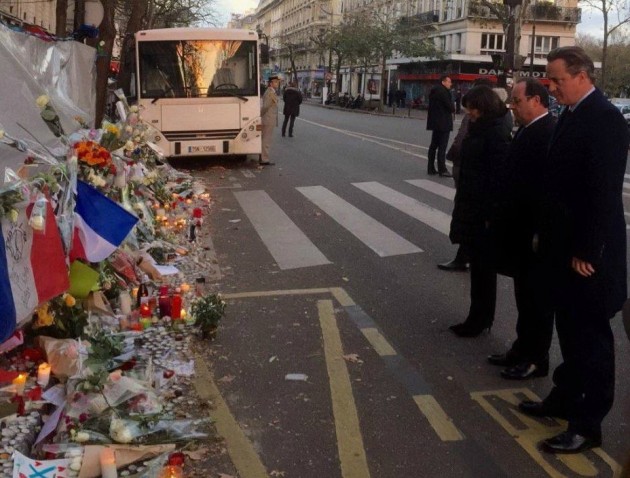 Attentati Parigi, Hollande e Cameron insieme davanti al Bataclan: “Uniti in Siria contro il culto della morte dell’Isis”