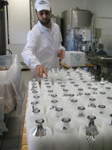 Tre ragazzi imbottigliano quotidianamente le commesse.