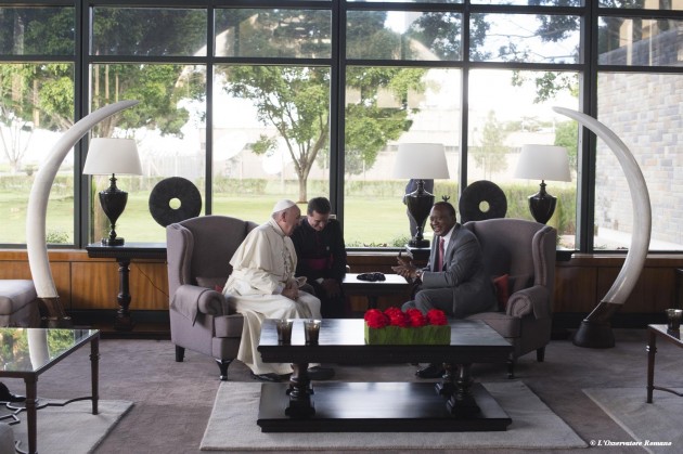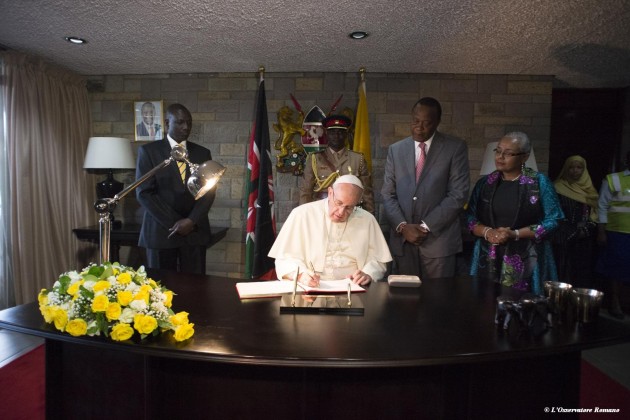 Ricordando i “barbari attacchi” al Garissa University College, dove persero la vita 148 persone, Francesco ha affermato che “troppo spesso dei giovani vengono resi estremisti in nome della religione per seminare discordia e paura e per lacerare il tessuto stesso delle nostre società. Quant’è importante – ha ribadito il Papa ai leader religiosi – che siamo riconosciuti come profeti di pace, operatori di pace che invitano gli altri a vivere in pace, armonia e rispetto reciproco! Possa l’Onnipotente toccare i cuori di coloro che perpetrano questa violenza e concedere la sua pace alle nostre famiglie e alle nostre comunità”.
