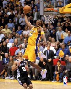 PLEASE NOTE THIS IMAGE IS FOR USE VIA THE CONSUMER POD SITE ONLY. LOS ANGELES – MAY 7: Kobe Bryant #8 of the Los Angeles Lakers makes a slam dunk in game two of the Western Conference Semifinals during the 2002 NBA Playoffs against the the San Antonio Spurs at the Staples Center in Los Angeles, California on May 7,2002. The Spurs won 88-85. NOTE TO USER: User expressly acknowledges and agrees that, by downloading and/or using this Photograph, User is consenting to the terms and conditions of the Getty Images License Agreement. Mandatory copyright notice: Copyright 2002 NBAE (Photo By Andrew D Bernstein/NBAE/Getty Images)