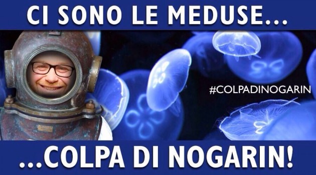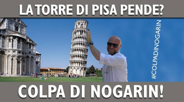 In una delle foto si vede il sindaco che regge la Torre di Pisa con la scritta: “La Torre di Pisa pende? Colpa di Nogarin!”. Oppure, dato che il vescovo di Livorno Simone Giusti è di origine pisana: “Il vescovo è pisano! Colpa di Nogarin!”. Ma le “responsabilità” sono infinite: dal Livorno in serie B alla presenza delle meduse in mare fino all’acqua “marmata” (gelida) alla torre della Meloria.