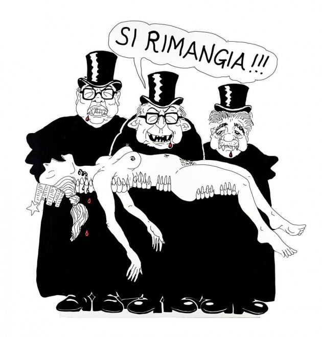 “Adesso con i politici della terza Repubblica non c’è più il pathos di una volta: sono sbiaditi”. Parola di Giorgio Forattini, il più longevo dei disegnatori satirici italiani, il più pungente, il più beffardo. Prima l’asta dei suoi cimeli e poi la presentazione de ‘Il Forattone’, un tomo di 780 pagine, mezzo secolo di satira, una cavalcata a briglia sciolte nella politica italiana e internazionale. Ha selezionato le vignette più dissacranti, scelte fra oltre 15mila. Giorgio, una matita sempre in tasca, perché l’ispirazione gli può venire così, da un momento all’altro, punta al bis. E in contemporanea alla casa d’aste Il Ponte di Milano, un nutrito parterre convocato da Carola Gancia, si aggiudicava le vignette più famose: Fanfani a forma di tappo che salta da una bottiglia di champagne e Giovanni Spadolini, nudo e coperto da una modesta foglia di fico.