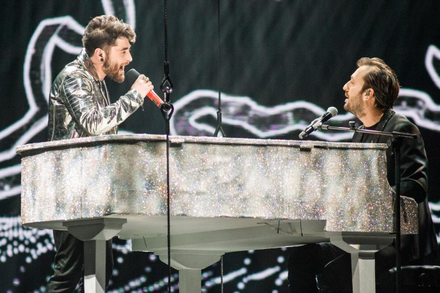 Questo dovevamo, per la cronaca della gara. Ma la finale di X Factor è stata molto di più. In realtà, a volte la gara sembrava riempire le pause tra un’esibizione e l’altra degli ospiti e dei giudici. E qui parte subito la prima riflessione sull’intrattenimento in tv. In soli dieci minuti di opening (con giudici e conduttore a cantare e ballare dopo essere scesi letteralmente dal cielo), SkyUno e Fremantle hanno mostrato al pubblico italiano cos’è l’intrattenimento televisivo di qualità nel 2015. Una parte cospicua del merito va a Luca Tommassini e alle sue scenografie, che hanno dato al numero una resa da grande show americano.