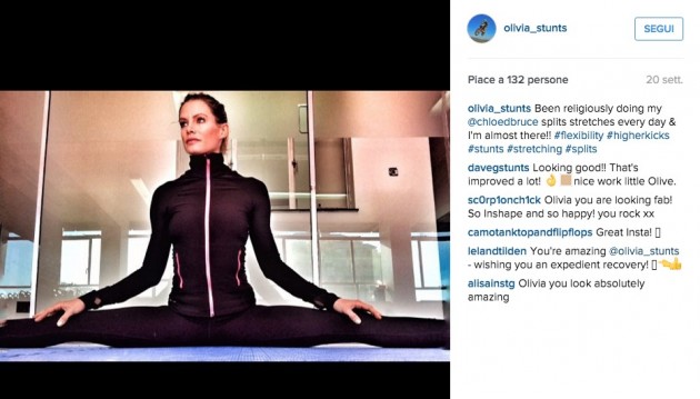 Dopo una carriera da modella e lottatrice di Muay Thai, Olivia era poi passata a quella di stuntwoman, prestando la sua figura a attrici come Charlize Theron e Gwyneth Paltrow, oltre a Mila Jovovich e recitando nell’ultimo capitolo di Star Wars-Il risveglio della forza, Mad Max-Fury road, Avengers: Age of Ultron, Guardiani della Galassia e Mortdecai.