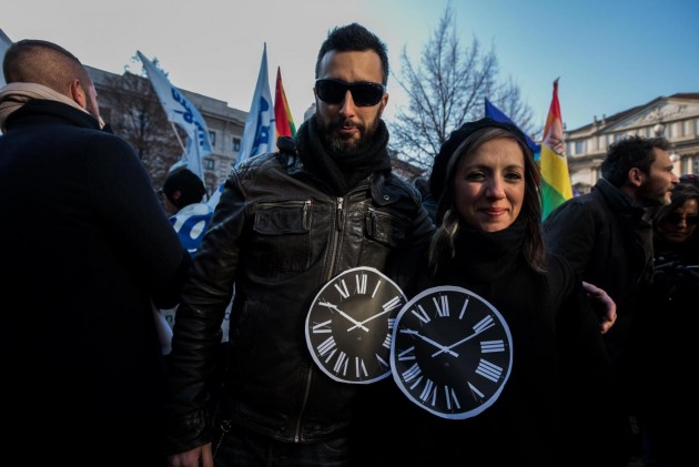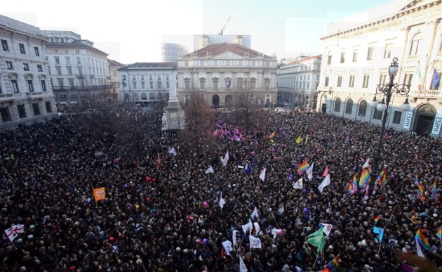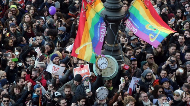 Migliaia di persone davanti alla Scala a Milano, Piazza del Pantheon a Roma gremita e una rete di oltre 90 manifestazioni in Italia e all’estero per dire sì all’approvazione della legge sulle unioni civili. In tutto, spiega l’Arcigay, sono “un milione” le sveglie che “hanno suonato oggi in tutto il Paese, il Parlamento le ascolti”. La sveglia è il simbolo dei flashmob a favore del ddl Cirinnà, organizzati da associazioni lgbt, laici, sostenitori o semplici cittadini favorevoli, e accompagnati dallo slogan e hashtag #SvegliaItalia. Iniziative che anticipano di qualche giorno la discussione sul provvedimento che il 28 gennaio approderà in Parlamento e di una settimana il Family Day day. Cento piazze hanno aderito in Italia e all’estero. Ci sono Napoli, Perugia, Catania, Palermo e Sassari ma anche Londra, Berlino, Copenaghen, Limerick, Dublino, Monaco, Francoforte e Boston.