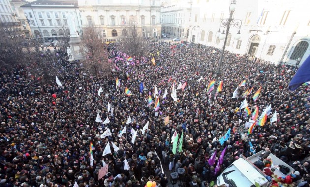 Folla anche a Milano, dove oltre cinquemila persone si sono ritrovate in piazza della Scala. In tanti hanno una sveglia appesa al collo, disegnata su un cartello con la scritta ‘Sveglia Italia! Fai il primo passo verso l’uguaglianza’. Tra i partecipanti, anche i candidati sindaci alle primarie del centrosinistra, Francesca Balzani, Giuseppe Sala e Pierfrancesco Majorino e il primo cittadino uscente Giuliano Pisapia. Presente anche il ministro per le Politiche agricole Maurizio Martina, che ha etichettato come “grave errore” la scelta di illuminare il Pirellone con la scritta Family Day e definito “di buon senso” la proposta di legge Cirinnà.
