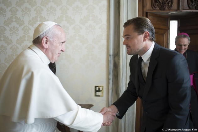 Leonardo DiCaprio è stato ricevuto in udienza in Vaticano da Papa Francesco. Al centro del colloquio, l’impegno dell’attore americano sul tema dei cambiamenti climatici. L’attore, candidato al premio Oscar 2016, sempre sensibile ai temi dell’ambiente, era intervenuto anche al vertice “Cop21” a Parigi e al World economic forum di Davos.