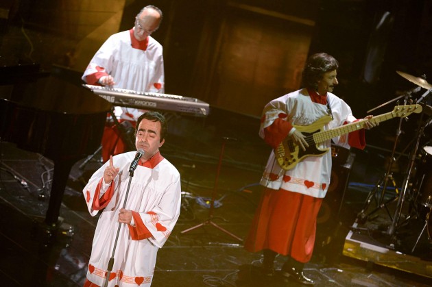 Spettacolo nello spettacolo: ai loro travestimenti siamo abituati, eppure non smettono di essere una sorpresa continua. Le variabili impazzite più imprevedibili di Sanremo, serissimi nel loro intento di non prendersi mai sul serio, gli Elio e le Storie Tese avevano dichiarato di ambire con la loro Vincere l’odio non alla vittoria, bensì a un più memorabile ultimo posto. Sono riusciti a ottenere qualcosa di più.