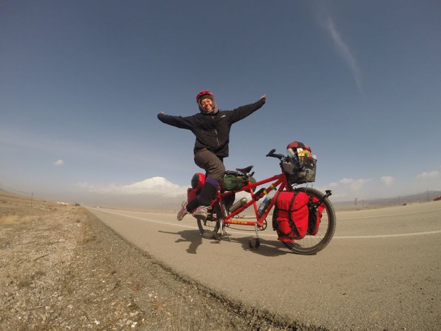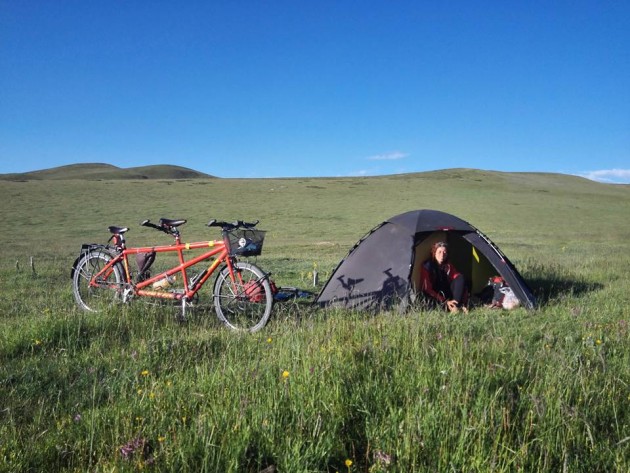 “Nel 2015 abbiamo visitato più Paesi che in tutta la nostra vita, dormito più notti in tenda che tra le pareti di una casa, raggiunto il punto più alto e quello più basso dei nostri viaggi. Cioè i 4000 metri del passo di Huanglong in Sichuan e i -80 della depressione di Turpan in Xinjiang”. Quando hanno chiuso la porta di casa era il 12 giugno 2014. Alessandro Maccarone, 31 anni, e Stefania Sposato, hanno la stessa età. Lui è di Prato, lei di Tirano, in Valtellina. Entrambi con la voglia di girare il mondo e guardarlo da vicino. “Finalmente – raccontano – viviamo una vita più sana, libera, a contatto con la gente e la natura”. Sì, perché dopo aver lasciato lavoro e studi, Alessandro e Stefania sono partiti per un giro completo del pianeta. In bici. O meglio, in tandem.