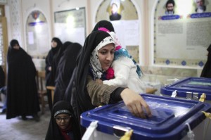 (160226) — TEHRAN, Feb. 26, 2016 (Xinhua) — A voter casts her ballot at a polling station in the city of Qom, Iran, on Feb. 26, 2016. Elections for Iran’s parliament (Majlis) and Assembly of Experts kicked off at 8 a.m. local time (0430 GMT) on Friday. (Xinhua/Ahmad Halabisaz)