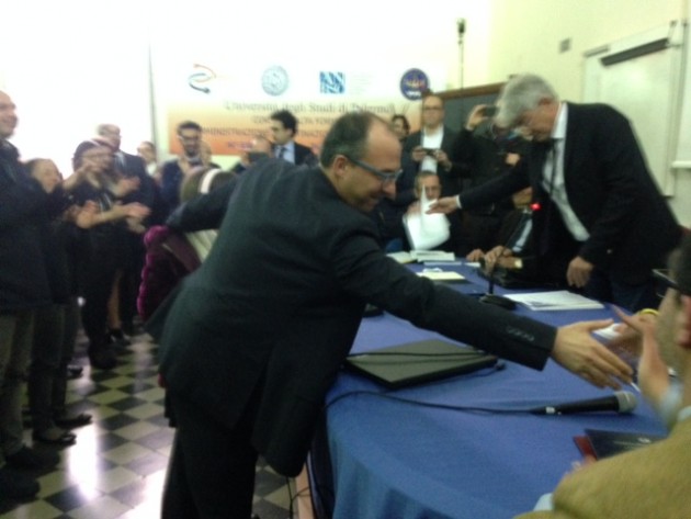 Nel frattempo, però, Faraone aveva abbandonato gli studi, completandoli soltanto adesso che ha conquistato la poltrona di sottosegretario all’Istruzione e all’Università. Una discussione durata dieci minuti, un paio di domande e tante strette di mano, con i fedelissimi del leader dem (tra questi: il segretario provinciale del Pd di Palermo Carmelo Miceli e il presidente regionale del partito Giuseppe Bruno) che sembravano in estasi. Pacche sulle spalle, qualche foto e un post sui social network, in tipico stile renziano. “Felicità per un percorso concluso, felicità per averti avuta al mio fianco”, ha scritto Faraone, che si è fatto proclamare dottore tenendo per mano la figlia Sara. Nessuna contestazione, a parte un solitario manifestante che, fuori dall’università, ha apostrofato il sottosegretario con un “buffone” appena gridato.