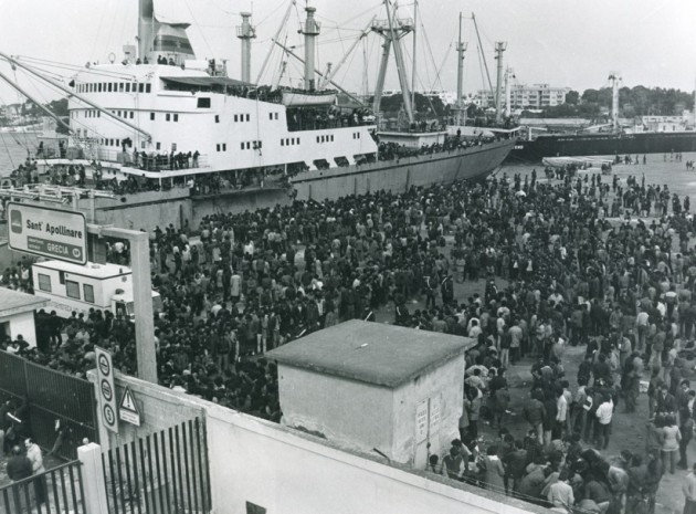 “Sembrava New York” – La prua della Lirja fa capolino a Brindisi alle 10. Trentasei ore prima, cinquemila persone vestite di stracci e di speranza l’avevano presa d’assalto nel porto di Durazzo. Fino a quel giorno, le sessanta miglia nautiche tra la Puglia e l’Albania, ultima appendice del comunismo, erano state uno spazio enorme. Su quel boat people, stretto tra migliaia di sconosciuti, c’è Pjerin con sua madre. Due ore più tardi tocca al mercantile Tirana arrivare nella rada brindisina con il suo carico di seimila albanesi. Alzano le dita in segno di vittoria, gridano “Italia, Italia”. Mostra l’indice e il medio anche Nexhip Hyseni, 32 anni, operaio in un’industria automobilistica che assemblava pezzi arrivati dalla Russia e dalla Cina. Nel pomeriggio, ecco la nave Apollonia e sei pescherecci. La Guardia costiera fuori dal porto rinuncia al blocco: quelle carrette del mare rischiano di ribaltarsi affogando migliaia di profughi e le loro speranze. Mentre i brindisini cucinano la cena, compare la Legend e la situazione degenera. La stazione marittima e la banchina di Sant’Apollinare traboccano già di gente affamata, stanca e disperata. Dal mercantile scendono, alcuni calandosi dalle cime o gettandosi in acqua, oltre settemila albanesi. Tra loro ci sono Arben Guxholli e Astrit Cela, un perito meccanico di 29 anni e un professore di tre anni più giovane. “Non avevo mai visto il profilo di una città così illuminato. Era Brindisi, ma a noi sembrava New York”, racconta Astrit. Piove e fa freddo. La Croce Rossa distribuisce pacchi di viveri lanciandoli dalle cabine telefoniche per non essere assalita; un’azienda chimica dona teli di plastica con i quali ripararsi dal maltempo. Pjerin, direttore dell’ospedale civile di Kryevidh, aiuta centinaia di persone in preda a vomito e dissenteria. La madre trasforma un bidone dell’immondizia in un comodo divano per riposare le gambe. Nella notte tra giovedì e venerdì inizia la fuga dalla spianata che accoglie gli oltre ventimila profughi, composta e blandamente controllata da poliziotti e carabinieri.