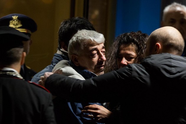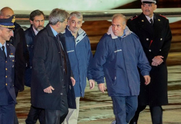 I due ex ostaggi sono stati accolti sulla pista dell’aeroporto dal ministro degli Esteri Paolo Gentiloni, che si è intrattenuto alcuni istanti con loro e li ha abbracciati, e dal generale Giuseppe Governale, comandante dei Ros. Poi l’intenso abbraccio con i familiari: la moglie di Pollicardo, Ema Orellana, e i figli Gino junior e Jasmine; emozionatissimi anche Maria Concetta Arena, moglie di Calcagno, giunta a Ciampino insieme a i figli Cristina e Gianluca. Sbarbati, stanchi e visibilmente provati, ma in buone condizioni, i due tecnici hanno a stento trattenuto le lacrime.