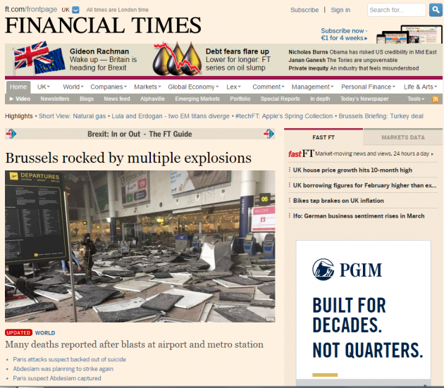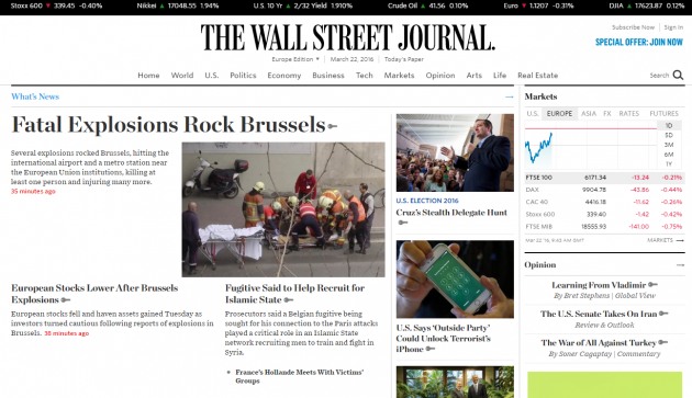 La notizia di Bruxelles sotto attacco apre i siti dei giornali di tutto il mondo. Dal New York Times allo Spiegel, dal Financial Times a El Mundo, fino ai quotidiani australiani: le esplosioni che hanno sconvolto la capitale belga sono raccontate in tutte le lingue e in continuo aggiornamento.