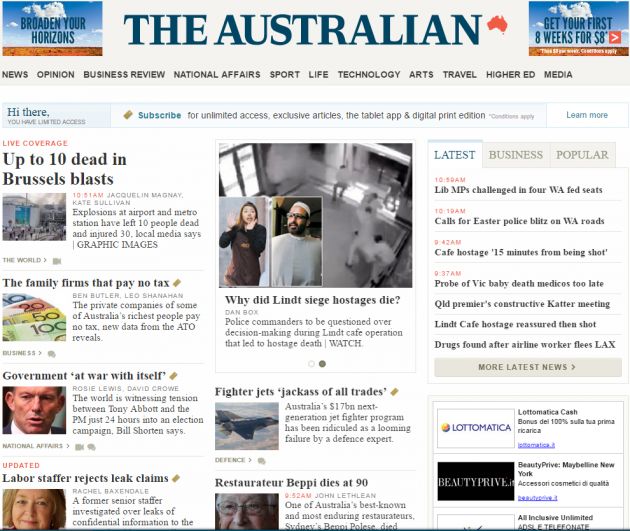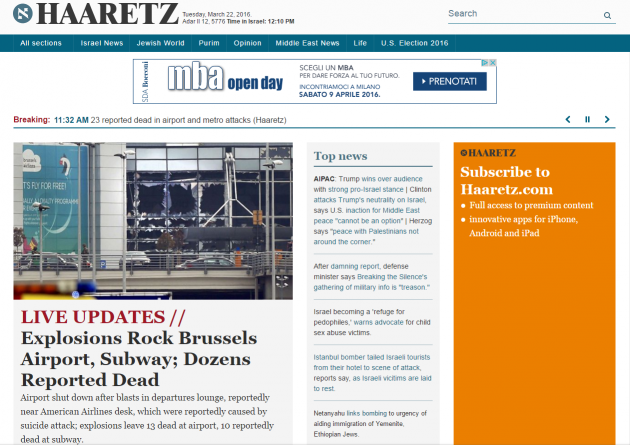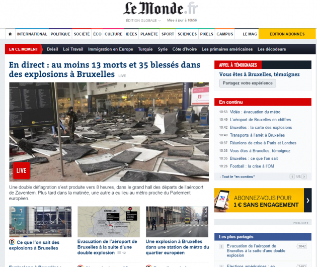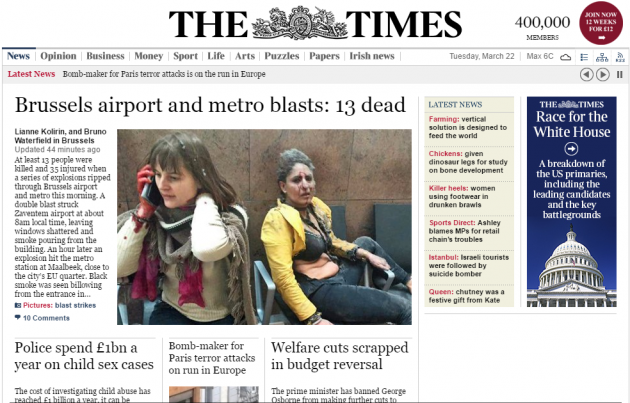 Attentati Bruxelles, la notizia sui siti dei giornali di tutto il mondo: dal New York Times allo Spiegel fino all’Australian