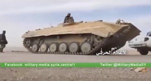 A member of the Syrian government forces rides in a tank in this still image taken from a video said to be taken near Palmyra and uploaded on March 23, 2016 by the Syrian government army, as Syrian government forces push their way into Palmyra while the army attempts to recapture the historic city from Islamic State. REUTERS/Syrian Government Army Handout via Reuters TV ATTENTION EDITORS – THIS PICTURE WAS PROVIDED BY A THIRD PARTY. REUTERS IS UNABLE TO INDEPENDENTLY VERIFY THE AUTHENTICITY, CONTENT, LOCATION OR DATE OF THIS IMAGE. EDITORIAL USE ONLY. NOT FOR SALE FOR MARKETING OR ADVERTISING CAMPAIGNS. NO RESALES. NO ARCHIVE. THIS PICTURE IS DISTRIBUTED EXACTLY AS RECEIVED BY REUTERS, AS A SERVICE TO CLIENTS.