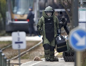 A bomb disposal expert takes part in a search in the Brussels borough of Schaerbeek following Tuesday’s bombings in Brussels, Belgium, March 25, 2016. REUTERS/Christian Hartmann