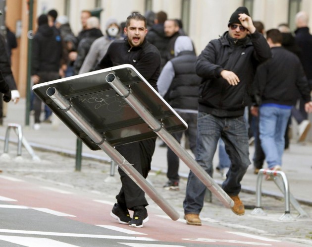 Secondo i media belgi, gli ultras appartenenti a diverse squadre della divisione 1 (equivalente della Serie A) sono arrivati dalle città di Vilvorde (da dove è partito un gran numero di foreign fighters e dove l’estrema destra è molto radicata) e Anversa. Vestiti di nero e incappucciati hanno iniziato a scandire slogan neonazisti e cori come ‘Hooligan belgi, siamo a casa nostra‘. Poi hanno cominciato a lanciare pietre, bottiglie e altri oggetti contro la polizia in tenuta antisommossa, che ha chiuso gli accessi alla piazza prima di caricare. Per disperdere i tifosi sono stati utilizzati anche gli idranti. Dalle immagini delle dirette dei media internazionali si scorge anche del fumo, probabilmente causato da lacrimogeni. In tutto i fermati sono una decina. Allentata la tensione, la polizia ha riaperto gli accessi alla piazza.