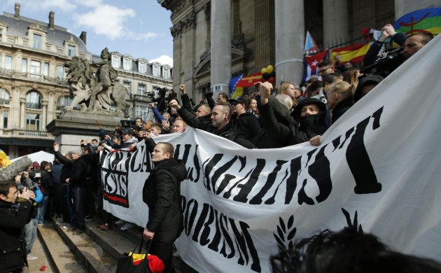 Momenti di tensione e scontri in piazza Borsa, cuore di Bruxelles. Nonostante il divieto di scendere in piazza che ha portato all’annullamento della grande “Marcia contro la paura” in programma per oggi, un gruppo di circa 450 hooligan di estrema destra si è radunato nel luogo divenuto il memoriale per le vittime degli attentati del 22 marzo per manifestare contro il terrorismo.