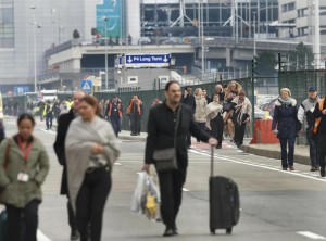People leave the scene of explosions at Zaventem airport near Brussels, Belgium, March 22, 2016. REUTERS/Francois Lenoir