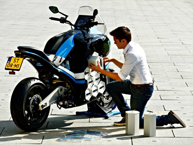 Dicevamo delle celle, che hanno il compito di immagazzinare energia. Sono 12 in totale, e hanno il vantaggio di essere modulari. Ovvero, poter essere tolte e inserite a seconda del tipo di percorso da effettuare. Anche perché la ricarica completa di ognuna di esse richiede 7 minuti e dunque consente di affrontare piccoli spostamenti senza aspettare troppo: per l’80% di tutto il pacchetto, infatti, ce ne vogliono 38 di minuti, mentre per il 100% 8 ore.