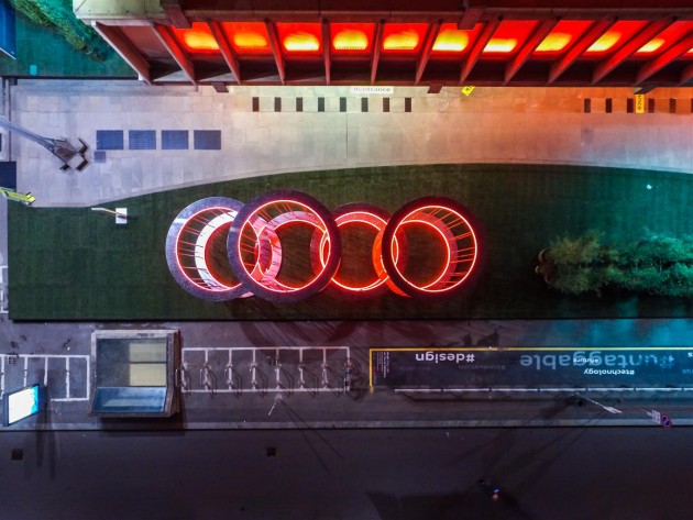 Si chiama Innovative Perspective ed è il percorso “sensoriale” (e non solo) con cui Audi cerca di uscire dai confini dell’automobile e aprirsi ad altre esperienze. Che nella fattispecie sono uno scenario avveniristico fatto di sculture metalliche e giochi di luci nel centro di Milano, in occasione della Design Week. Le prime sono opera dell’architetto Piero Lissoni, che reinterpreta il logo dei Quattro Anelli nelle due installazioni di via Montenapoleone e Torre Velasca. Il grattacielo di 26 piani, che per una settimana ospita l’Audi City Lab, è stato poi letteralmente “vestito” di luci e colori dal light designer Ingo Maurer. E ospita le anteprime italiane della nuova crossover Q2 e della h-tron quattro concept, il prototipo a idrogeno e celle di combustibile che aveva esordito a gennaio al salone di Detroit.
