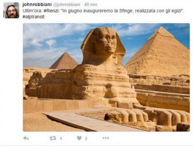 Le reazioni, tra il divertito e il piccato, non si sono fatte attendere. Si va dallo sfottò generico, come l’annuncio dell’inaugurazione della sfinge “realizzata con gli amici egiziani” alle reazioni istituzionali. Il consigliere nazionale Fabio Regazzi, su facebook, ha scritto: “Renzi spaccone o disinformato? Probabilmente entrambi. In ogni caso vogliamo ricordare al Premier italiano che non solo l’Italia non partecipa nemmeno con un franco all’investimento di 28 miliardi per Alptransit, ma che la Svizzera finanzierà con la bellezza di 280 milioni di franchi la realizzazione del corridoio ferroviario a 4 metri (innalzamento del profilo delle gallerie) sul territorio italiano”.