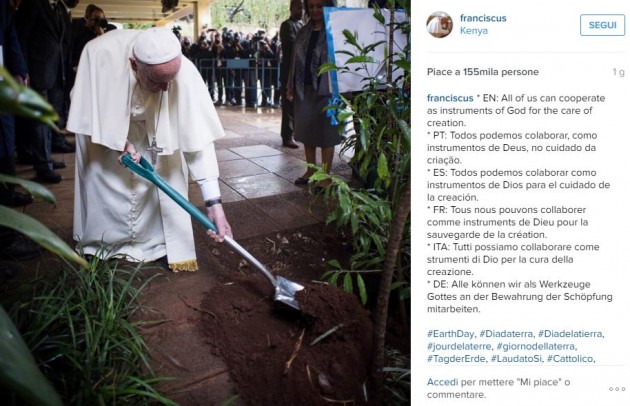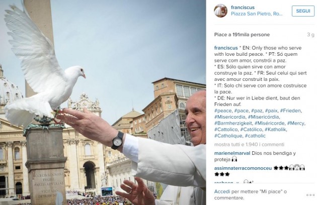 Su Instagram, dove l’account ufficiale di Bergoglio @franciscus viaggi verso i 2 milioni e mezzo di seguaci, sono numerosi gli “scatti pop” del Papa insieme a quelli della torta preparata per il pranzo del suo onomastico. È decorata in superficie con la tradizionale immagine di san Giorgio mentre uccide con la lancia il drago che rappresenta il maligno ed è stata realizzata per l’occasione dalla gelateria pasticceria Hedera di Francesco Ceravolo a Borgo Pio, fornitrice ufficiale della residenza del Papa. Per il dolce, a basso contenuto glicemico per rispettare la dieta che segue scrupolosamente Bergoglio, è stato utilizzato il miglior pistacchio di Bronte e la nocciola biologica del viterbese.